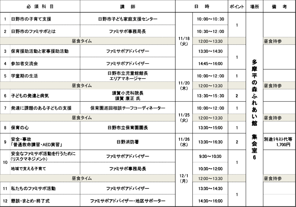 お申し込みは10月31日(金)(☎ファミリー・サポート・センターたかはた042-599-7616)
